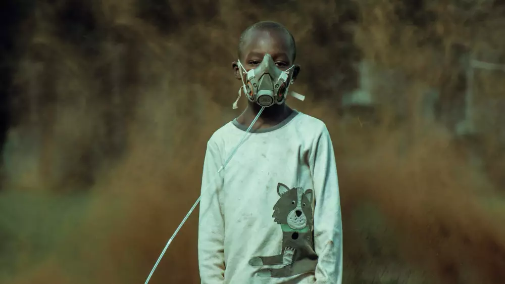 Постановочный снимок кенийца Очиенг Оньянго занял призовое место в категории "Природа в действии". Автор хотел показать последствия климатических изменений для жизни человека. На фотографии изображен мальчик в кислородной маске, трубка которой выходит из пакета, в который обернуто растение, будто позволяющее ему дышать.