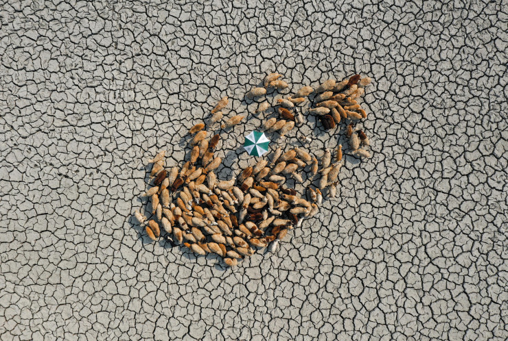 Фотограф из Бангладеш занял призовое место в категории "Сопротивление" за снимок, на котором запечатлено стадо овец, бегающее с поля на поле в поисках травы в потрескавшейся почве. Экстремальная засуха в стране создала трудности для всех живых существ.