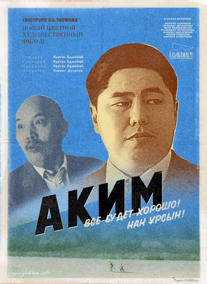 27-летний Аян Нургазинов является поклонником современного кино. В ноябре он, просматривая новый комедийный фильм Нуртаса Адамбая "Аким", задумался, а какой бы была афиша, если бы это кино снималось в 1920-1970 годах.