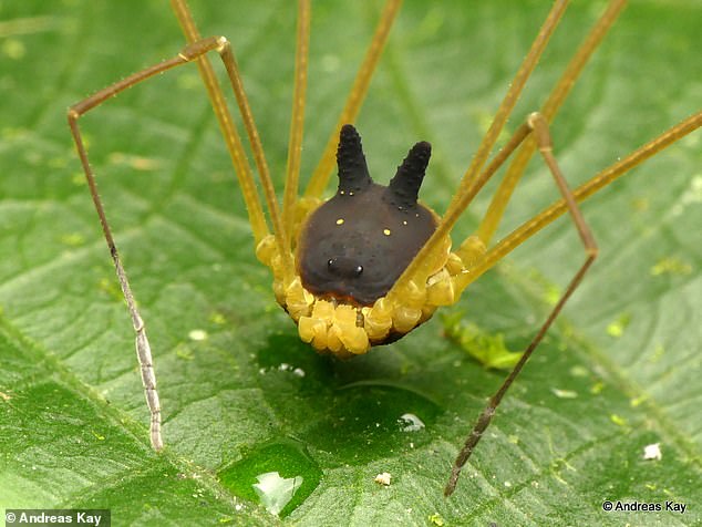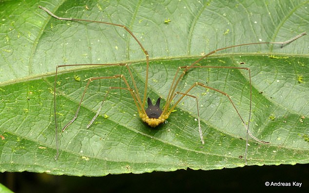 Необычного паука, тельце которого напоминает голову собаки со светящимися желтыми глазами, запечатлел на фото натуралист Андреас Кэй.