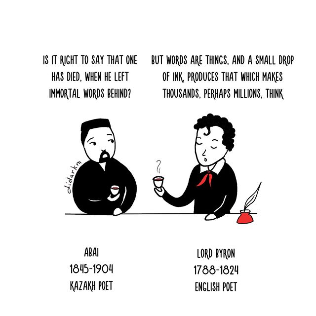 "Слова - это предметы, и маленькая капелька чернил, падая на мысль, подобнее росе, производит то, что заставляет думать тысячи, быть может, миллион людей". Лорд Байрон © abaycartoons / Instagram