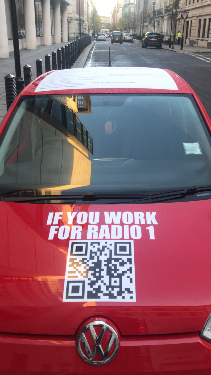 Hi @BBCR1, I’ve printed my CV onto my car and parked it outside the studio. There’s a QR code which I reckon you should watch. Ta x pic.twitter.com/HYx9gDLaRb