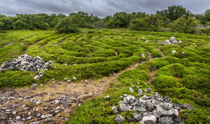 35 каменных сооружений, найденных на Соловецких островах, входят в группу так называемых "северных лабиринтов". Точно такие же постройки есть в Ирландии и Шотландии, что может говорить о существовании в прошлом единой нации, расселившейся по миру. Археологи связывают лабиринты с культом мертвых - здесь были найдены останки человеческих жертвоприношений. Местные жители стараются обходить лабиринты стороной.