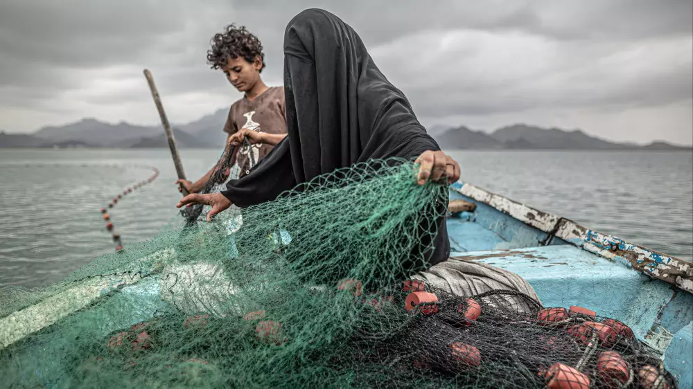 На этом фото запечатлена женщина по имени Фатима и ее сын. Женщина зарабатывает на жизнь рыбной ловлей, чтобы прокормить девятерых детей. Родная деревня Фатимы была опустошена вооруженным конфликтом в Йемене, но женщина вернулась, чтобы вырастить детей, и купила лодку на деньги, которые заработала на продаже рыбы.