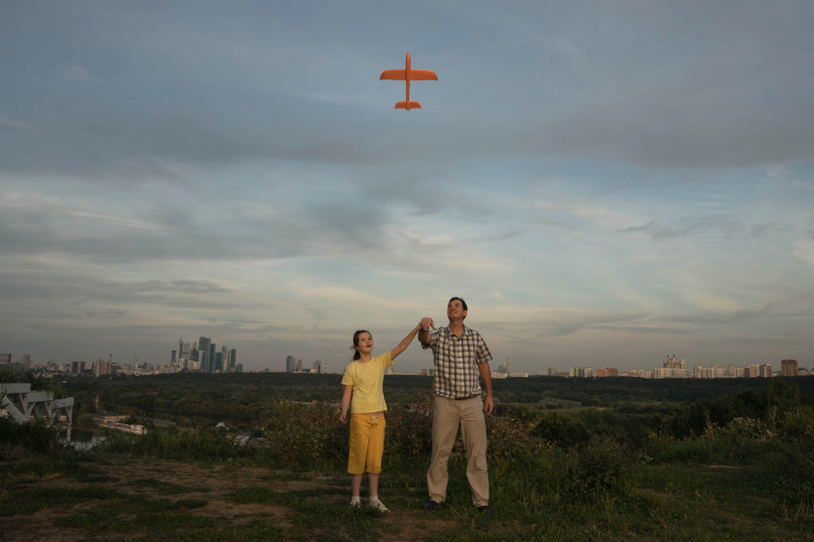 На фото запечатлен момент, когда отец учит свою 10-летнюю дочь с аутизмом запускать в воздух игрушечный самолет.
