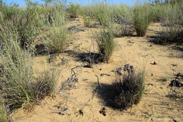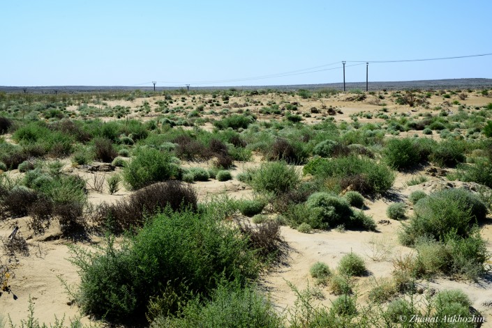 Пустыня сдает позиции. Вскоре она превратится в степь. Уже сейчас здесь можно увидеть такие зеленые островки.