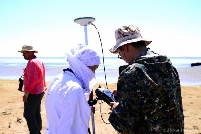 Участники экспедиции при помощи высокоточной аппаратуры сняли GPS-координаты долговременных объектов (пристань, мачту и так далее), и теперь в дальнейшем с помощью изображений спутниковых мониторов будет констатироваться наступление пустыни в регионе.