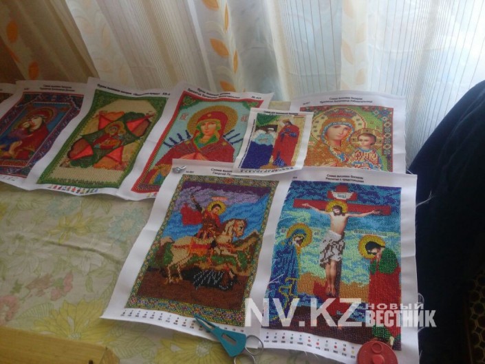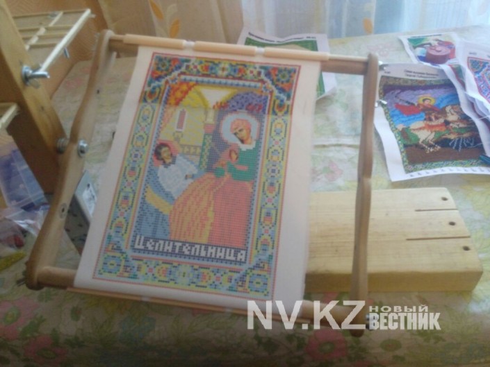 Спустя время карагандинка стала замечать, что такое занятие ее успокаивает. В первую очередь потому, что она вышивала святой лик, в который верит. А еще хобби занимало очень много времени: "один шажок, одна бусинка - два миллиметра". 40 минут у нее уходило на один ряд.