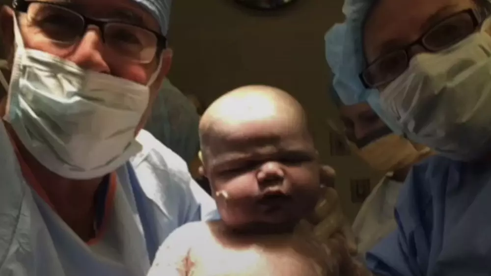 Роды прошли на 38-й неделе с помощью кесаревого сечения, поскольку мальчик родился весом аж в 6,5 килограмма и ростом 60 сантиметров. Оперировали два врача, потому что младенец оказался на редкость крупным - в два раза больше, чем среднестатистические новорожденные.