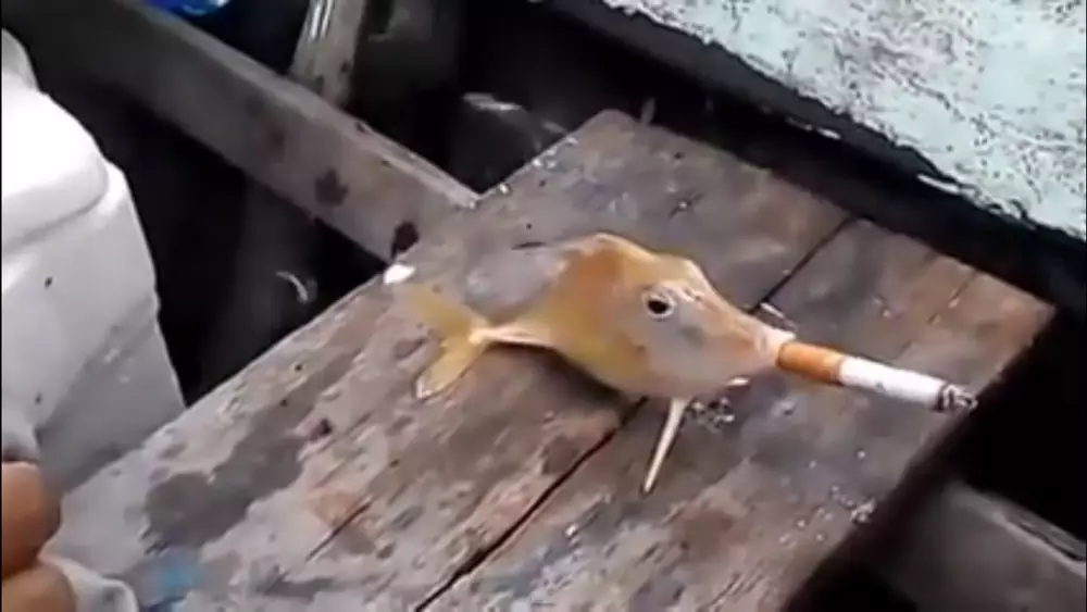 Неизвестные рыбаки навлекли на себя гнев пользователей, выложив в Интернет короткий видеоролик с издевательствами над пойманной рыбой. Мужчины установили рыбу на деревянную доску и вложили ей в рот зажженную сигарету, заставив морского обитателя несколько раз затянуться ядовитым дымом. Действо сопровождается громким смехом.