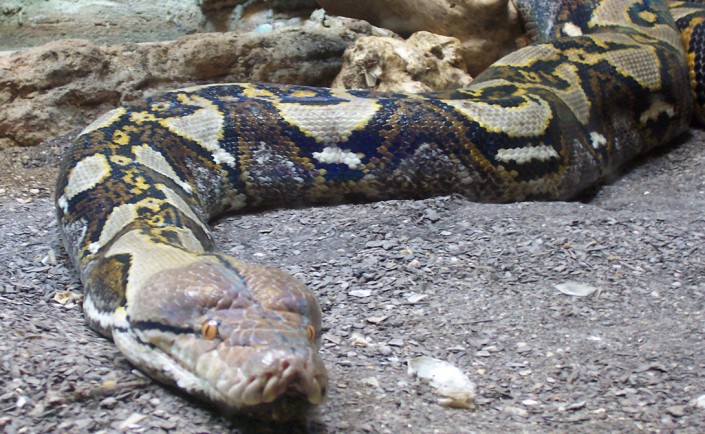 Самая длинная змея в мире. Чаще всего в природе встречаются экземпляры по 7-7,5 метра, но в одном из зоопарков Австралии долгое время жил рекордсмен, питон Дейв, выросший аж до 12,2 метра.