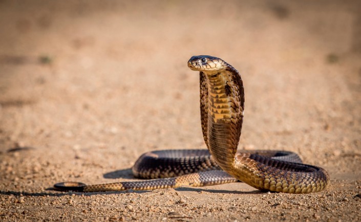 А это - самая крупная из отряда ядовитых змей. Средняя длина королевской кобры - около 4 метров, рекордсмен же достигал пяти с половиной метров.