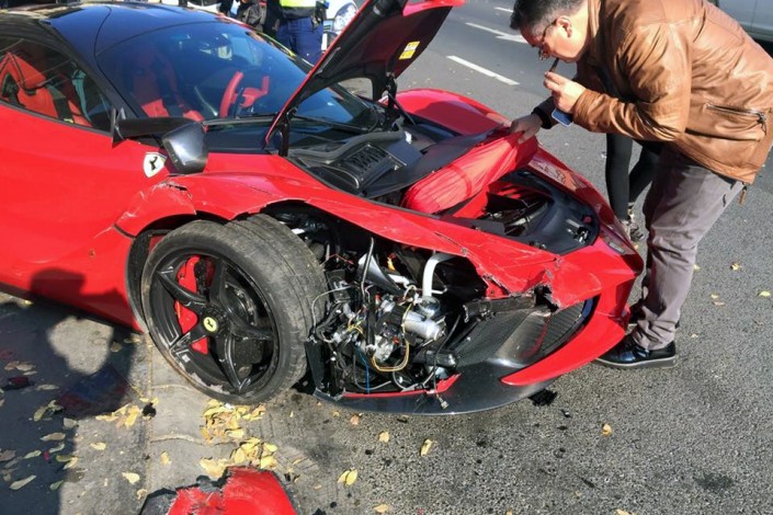 Супергибрид под управлением некого юного пилота разбился в Шанхае - предположительно, из-за сочетания мокрой дороги, высокой скорости и - чего уж там - неопытности водителя. Сам паренек, к счастью, не пострадал.