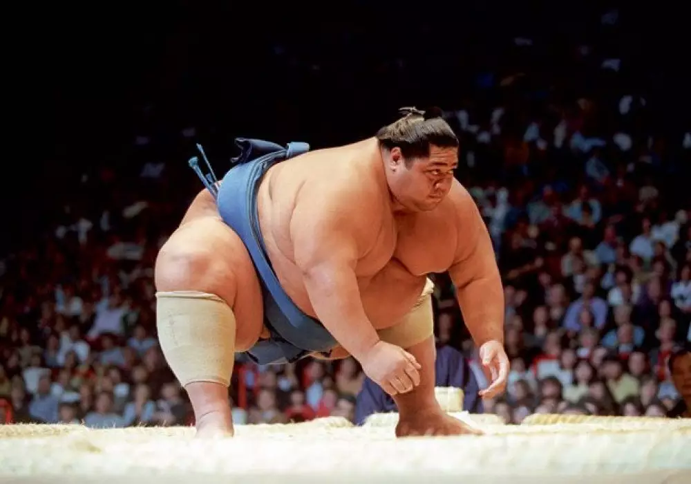 2. Борцы сумо, несмотря на большой вес и габариты, подолгу отрабатывают растяжку. Каждый профессиональный сумотори должен уметь садиться на шпагат.