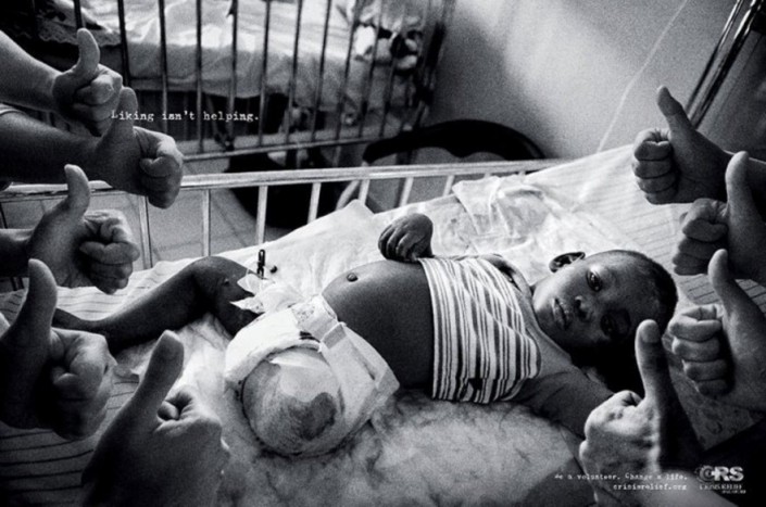 Социальная реклама от сингапурского агентства Publicis: "Лайки не помогают. Стань волонтером. Измени жизнь".