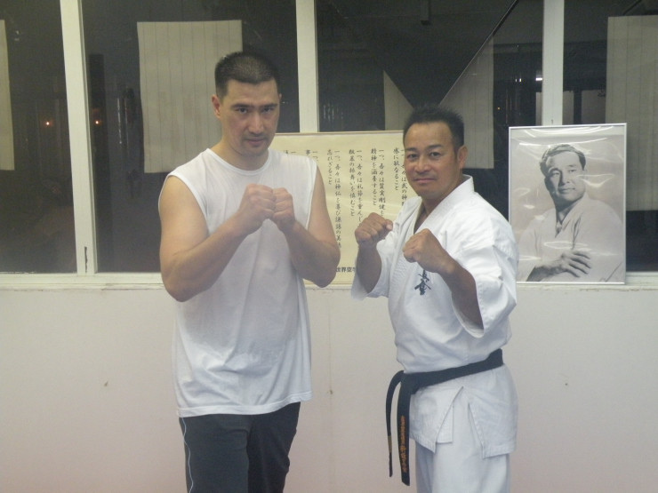 На экзаменах с директором шин-кекушинкай каратэ Кенжи Мидори (Kenji Midori) в Фукуока, Япония