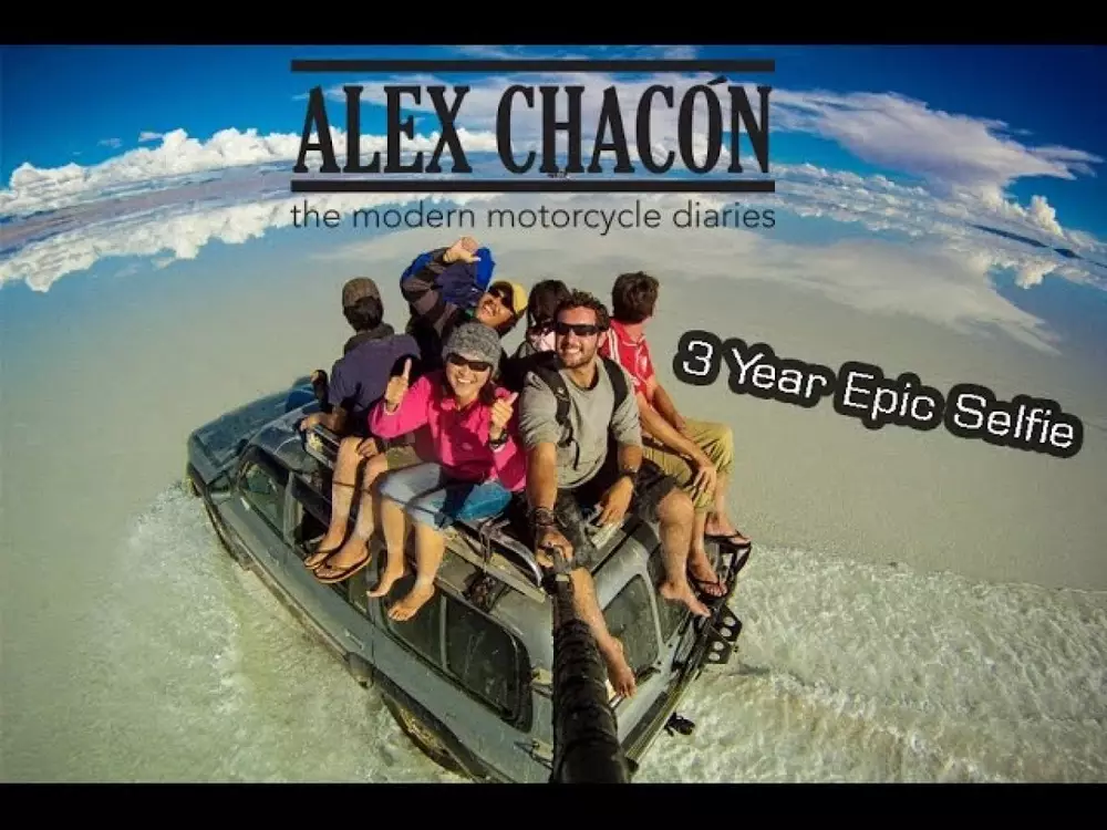 Ради видеоселфи в духе путевого дневника известный мотопутешественник Алекс Чакон проехал более 200 тысяч километров на мотоцикле и заснял себя в самых известных местах мира. На съемку необычного селфи у него ушло три года.