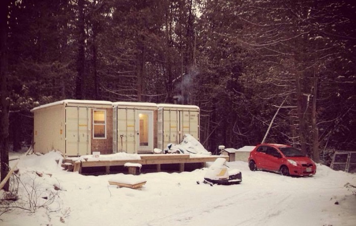 Житель Канады Джозеф Дюпюи построил необычный дом из морских грузовых контейнеров в лесу недалеко от Оттавы. На покупку трех контейнеров у 29-летнего специалиста в области возобновляемых источников энергии ушло 10 200 канадских долларов (около 8,3 тысячи долларов США) и три месяца работы.
