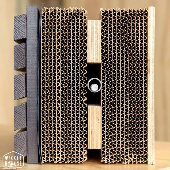 Компактный дом Wikkelhouse, в конструкции которого используется прессованный картон высокой прочности, создан голландской компанией Fiction Factory. Wikkelhouse переводится с голландского как "дом-обертка". Процесс создания необычной постройки действительно напоминает обертывание: каркас дома оборачивается 24 слоями картонных модулей весом по 500 кг, которые легко соединяются между собой с помощью экологичного клея.