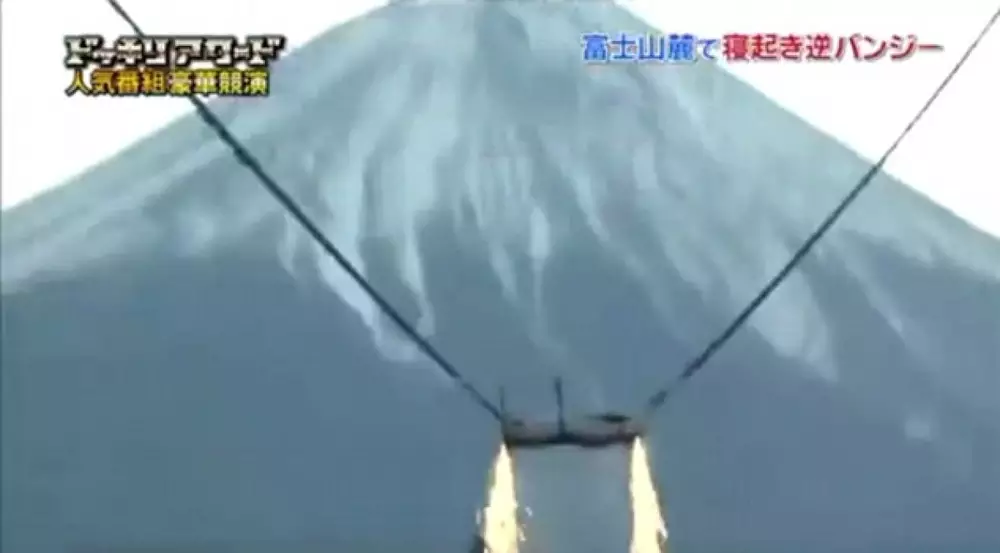 Японский комик Тошиаки Касуга стал жертвой жесткого розыгрыша, показанного в программе Dokkiri Award-2014 на одном из японских телеканалов. Друзья пригласили его на съемки, которые якобы должны были проходить у подножия Фудзиямы. Приехавший под вечер артист не заподозрил подвоха. Все было как обычно - оборудование, декорации. Стоявшие поодаль два подъемных крана также не вызвали подозрений.