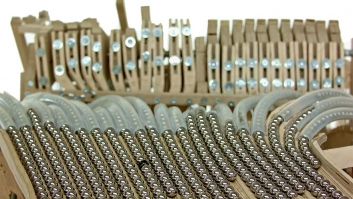 Шведский музыкант Мартин Молин (Martin Molin) из группы Wintergatan и его друзья создали причудливый музыкальный инструмент, в котором задействованы две тысячи металлических шариков и около трех тысяч запчастей - рычагов, шестеренок, блоков и даже конструктор LEGO.