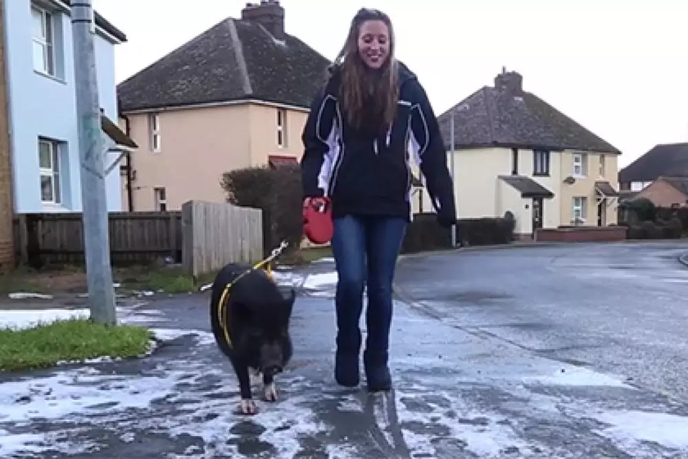 В ежедневный рацион свиньи входят вареные овощи и бананы. Хозяйка рассказала, что Фелла спит в спальне вместе с собаками, ей позволяют беспрепятственно перемещаться по дому. "Это все равно, что завести собаку, только Фелла чище, и за ней легче ухаживать", - отметила девушка. Сейчас свинья, которой недавно исполнился год, достигла размеров взрослой немецкой овчарки и продолжает расти. Семья выкупила Феллу у фермеров за 70 фунтов (около 100 долларов) в середине прошлого года. Тогда животному было три месяца.