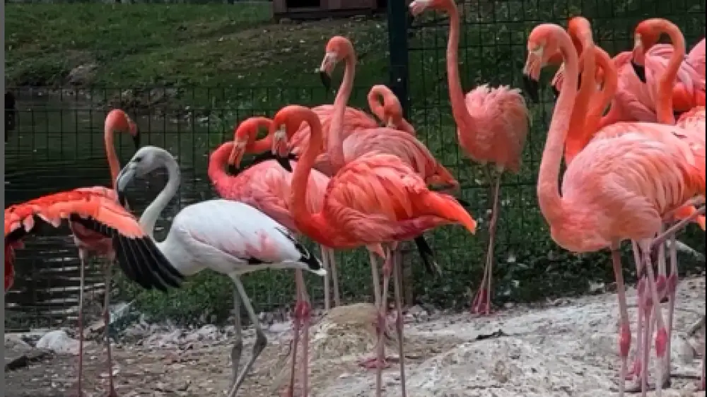 "К сожалению, эта птица уже не выживет в природе. Сейчас он подружился с нашими красными фламинго из Центральной Америки. А сам он относится к виду "обыкновенный фламинго". Заметно, как он сильно отличается от американского родственника", - пояснили представители зоопарка.