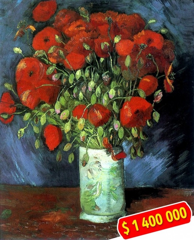 Семейная пара из Висконсина приобрела копию картины Ван Гога "Ваза с красными маками". Репродукция была настолько хороша, что вызвала у супругов подозрения, которые подтвердил оценщик: на самом деле пара купила оригинал 1886 года, стоимость которого равняется 1,4 миллиона долларов.