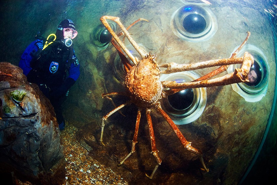 Самый большой выросший в неволе краб, которого зовут Большой Папочка, живет в Японии. Длина его ног достигает почти трех метров.