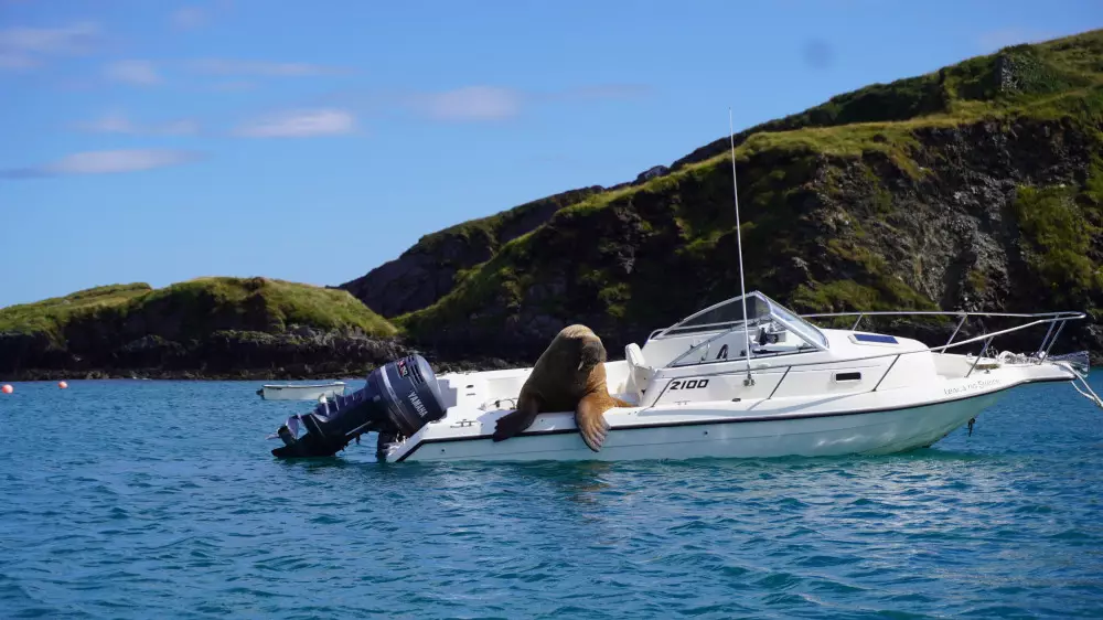 Для неповоротливых и неуклюжих моржей, традиционно обитающих в арктических водах и привыкших отдыхать на льдинах, длительные путешествия весьма утомительны. TengriMIX расскажет, как морж-путешественник забрел в новое для себя место и нашел для привала "айсберг" в виде лодки.