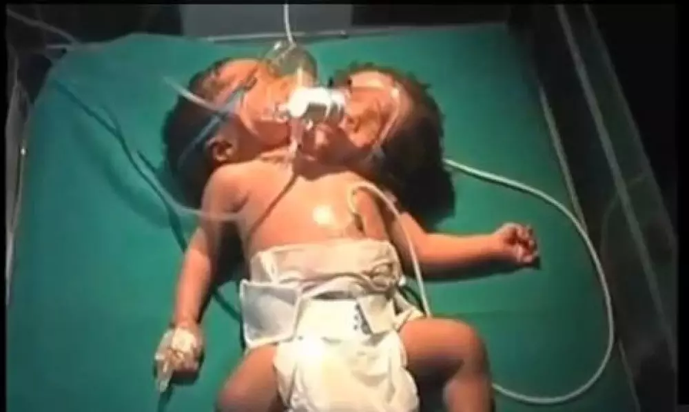 Медики опасаются, что ребенок не сможет долго бороться за жизнь, потому что процент выживаемости новорожденных с подобными аномалиями крайне мал. У малышки одно тело, две шеи и две головы. Ребенок находится в реанимации.