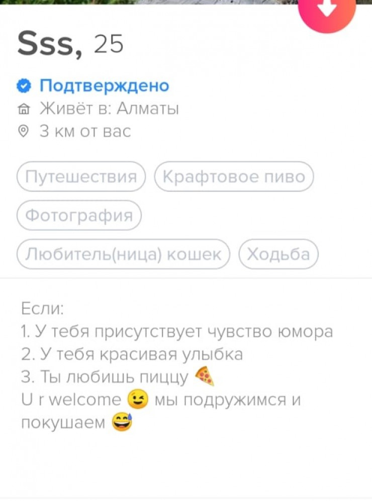 Для кого-то популярное приложение Tinder - это способ завести новые, ни к чему не обязывающие знакомства. Кто-то ищет здесь серьезные отношения и даже находит партнера на всю жизнь. Но если в офлайне, как говорится, встречают по одежке, то в Tinder "встречают" по анкете. Конкуренция большая. Корреспондент TengriMIX решил узнать, насколько креативны казахстанские пользователи.