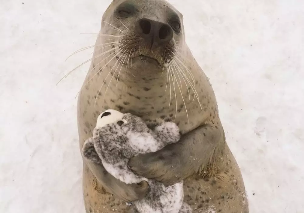 Действительно, тюлень так бережно держит игрушку, что очаровывает абсолютно всех, кто смотрит на фото.
