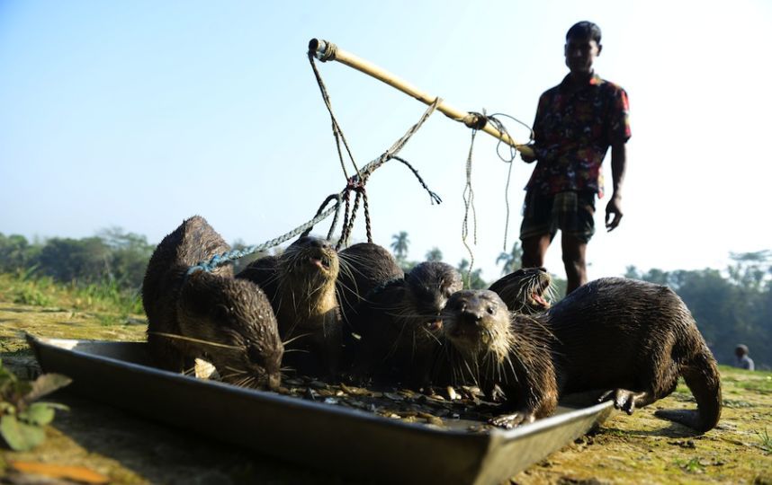 Выдры помогают рыбакам в Бангладеш ловить рыбу, собщает ФотоТелеграф.