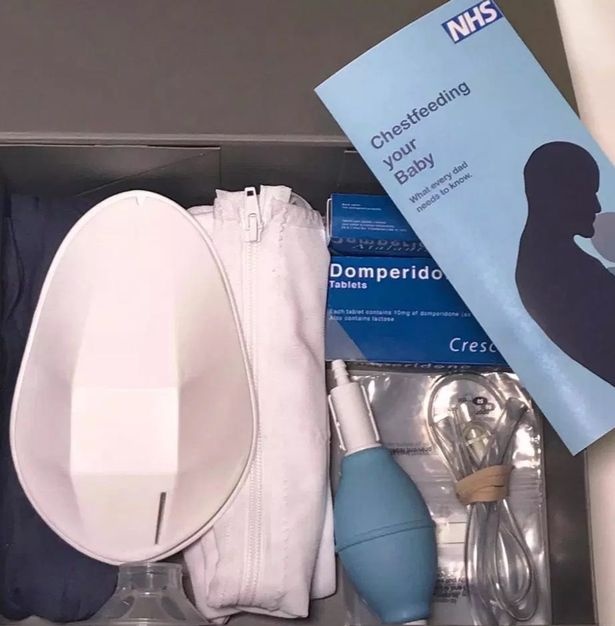 Также в набор грудного вскармливания для мужчин входят молокоотсос и жилет для сдавливания, похожий на бюстгальтер для беременных.