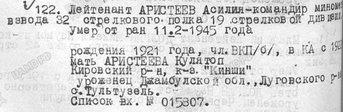 Когда началась война, Асилие было всего 20 лет, тогда он уже был инспектором райфинотдела в Джалал-Абаде. Призвали его два года спустя. Он быстро стал из младшего сержанта лейтенантом, был командиром минометного взвода 32-го стрелкового полка 19-й стрелковой Воронежско-Шумлинской Краснознаменной орденов Суворова и Трудового Красного Знамени дивизии.