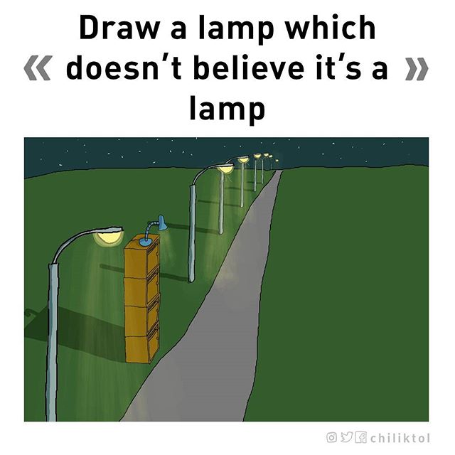 "Нарисуй лампу, которая не верит, что она лампа"
