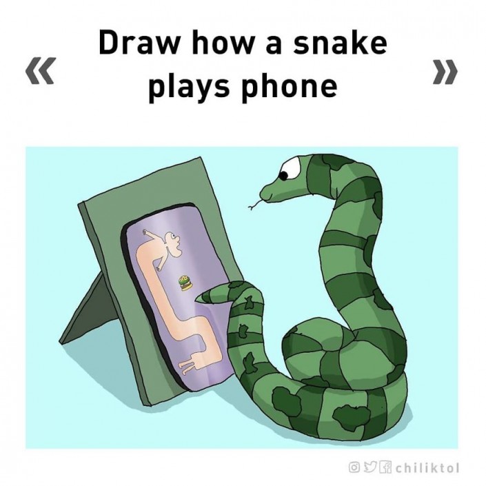 "Нарисуй змею, играющую на телефоне"