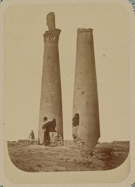 Сауранские качающиеся минареты просуществовали плоть до XIX века. Даже фотография сохранилась. На ней отчетливо видны башни… и человек, разбирающий это чудо света на кирпичи.