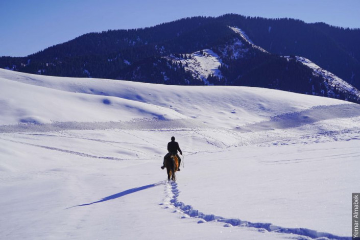"Около восьми часов за стадом следят пастухи. От кусачего холода их спасает плотная теплая одежда и термос горячего чая. К заходу солнца они уже пригоняют скот домой, потому что важно успеть подсчитать его количество дотемна", - рассказывает Ернар Алмабек.