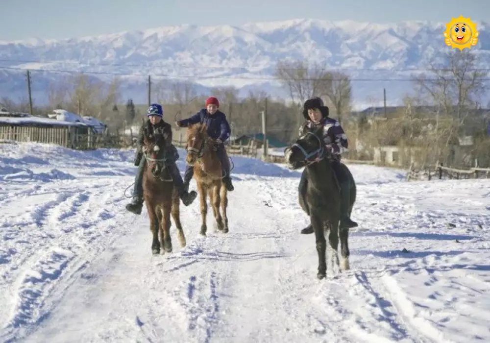"Мальчишкам по 8-10 лет. В ауле очень рано садятся на лошадь. Дети не боятся скота. К примеру, местный житель рассказал, что его сын Нуржигит в три года взобрался на взрослого коня. У животного на ногах были путы, но мальчишка все равно ускакал. Мужчина испугался, не обнаружив сына и коня. Долго искал их и нашел в полутора километрах от дома. Лошадь спокойно паслась на лужайке, а мальчик, довольный, сидел верхом. Поэтому в семилетнем возрасте дети уже умеют ездить верхом", - рассказывает Ернар.