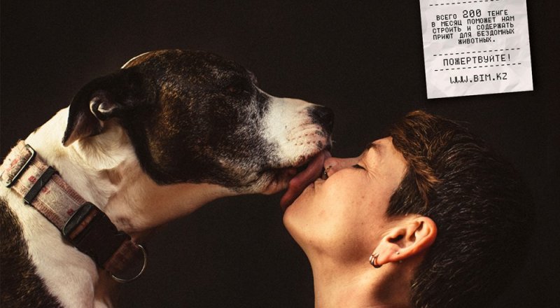 Креативщики рекламного агентства Openeyes DDB решили высмеять шум, возникший вокруг постера с поцелуем Курмангазы и Пушкина и запустили кампанию по сбору средств на содержание приюта для бездомных животных "Белый бим". На своих плакатах они изобразили поцелуй собаки и человека.