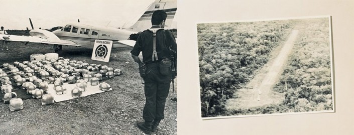 Арестованный груз наркотиков (слева). Взлетная полоса в джунглях (справа).