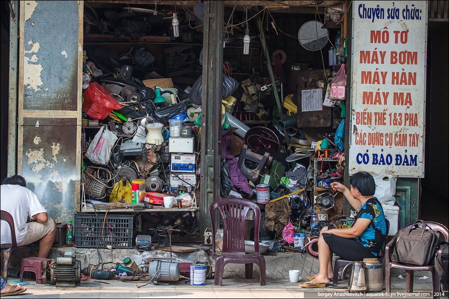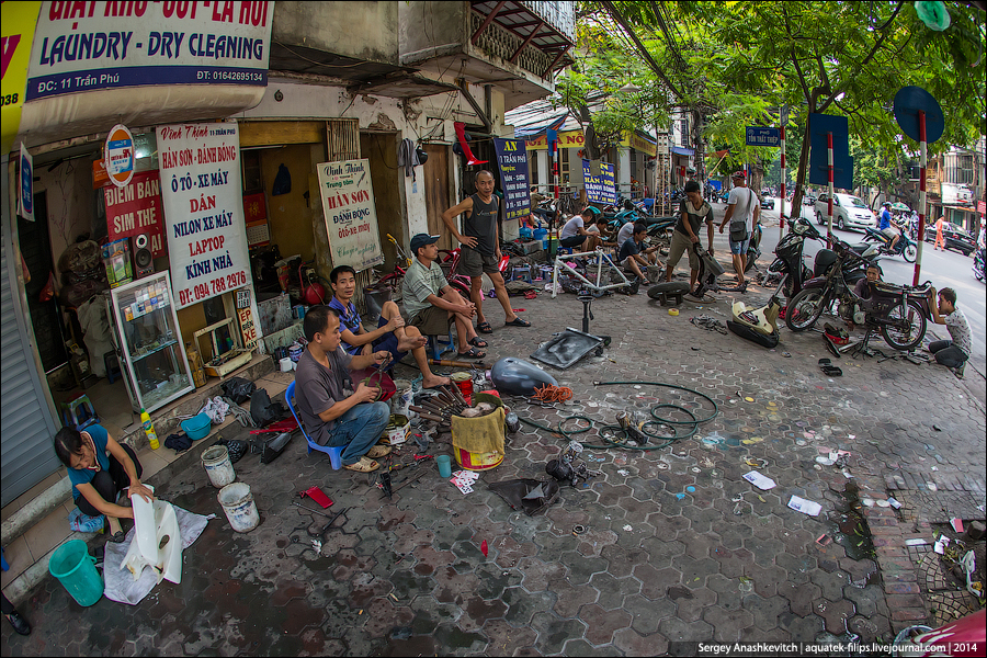 Ханойские улицы полны не только торговцев, но и разного рода ремесленников. Здесь можно встретить кого угодно - от обувщиков до фрезеровщиков с выставленными на улицу станками, от мастеров уличного массажа до резчиков по камню, изготавливающих надгробные таблички.