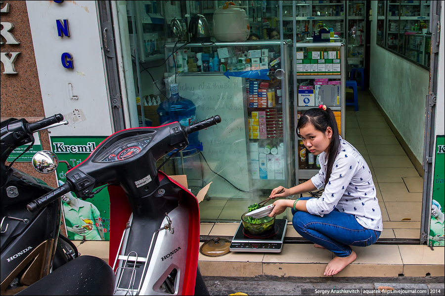 Глядя на обычную жизнь ханойской улицы, кто-то скажет: "Кошмар и ужас", кто-то скажет: "Нам грех жаловать на свою жизнь", а кто-то может быть найдет что-то близкое и даже родное. Да, эта жизнь значительным образом отличается от той жизни, которую мы привыкли видеть на улицах своих городов - вьетнамцы все делают на улице - работают, торгуют, отдыхают, занимаются бытовыми делами и даже едят... Но это их жизнь. Такая, какая есть. И они в ней счастливы.