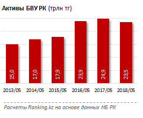 Годом ранее этот показатель был равен 24,9 триллиона тенге. В свою очередь, с начала 2018 года объем активов банков второго уровня сократился на 1,2 процента, или на 279 миллиардов тенге.
