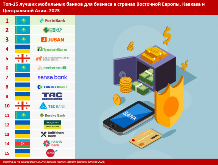 Развитие мобильного банкинга для бизнеса в Казахстане отмечают крупнейшие международные агентства. Так, согласно исследованию мобильных банков для бизнеса в странах Восточной Европы, Кавказа и Центральной Азии, проведенному информационно-аналитическим агентством SME Banking Agency, первые три лидирующих места в регионе заняли именно банки из Казахстана. Лучшим мобильным банком в регионе стал ForteBank, занявший первое место в рейтинге.