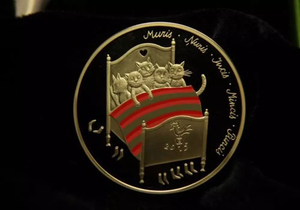 Как сообщили в банке, монета с котами создана по мотивам сказки "Пять котов" Альберта Кроненберга, известного латышского художника-графика, поэта и писателя. "Это первая коллекционная монета особой серии, посвященной самым любимым и ярким латышским сказкам", - пояснил пресс-секретарь Банка Латвии Янис Силакалнс.