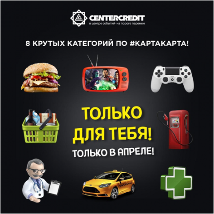 Банк ЦентрКредит рад сообщить о запуске нового продукта - виртуальной карты - #картакарта. Для ее выпуска требуется приложение StarBanking и всего несколько минут свободного времени! Виртуальная карта является оптимальным решением в нынешних условиях: клиенту не нужно посещать отделение, и он может в полной мере воспользоваться главным достоинством #картакарта - супер-кэшбэками!