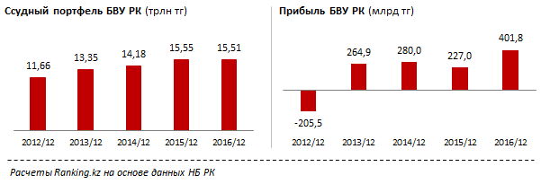 Как показывает статистика, генерировать прибыль банки могут и в отсутствие активной кредитной деятельности - за 2016 год ссудный портфель БВУ сократился на 43 миллиарда тенге, и составил 15,5 триллионов тенге.